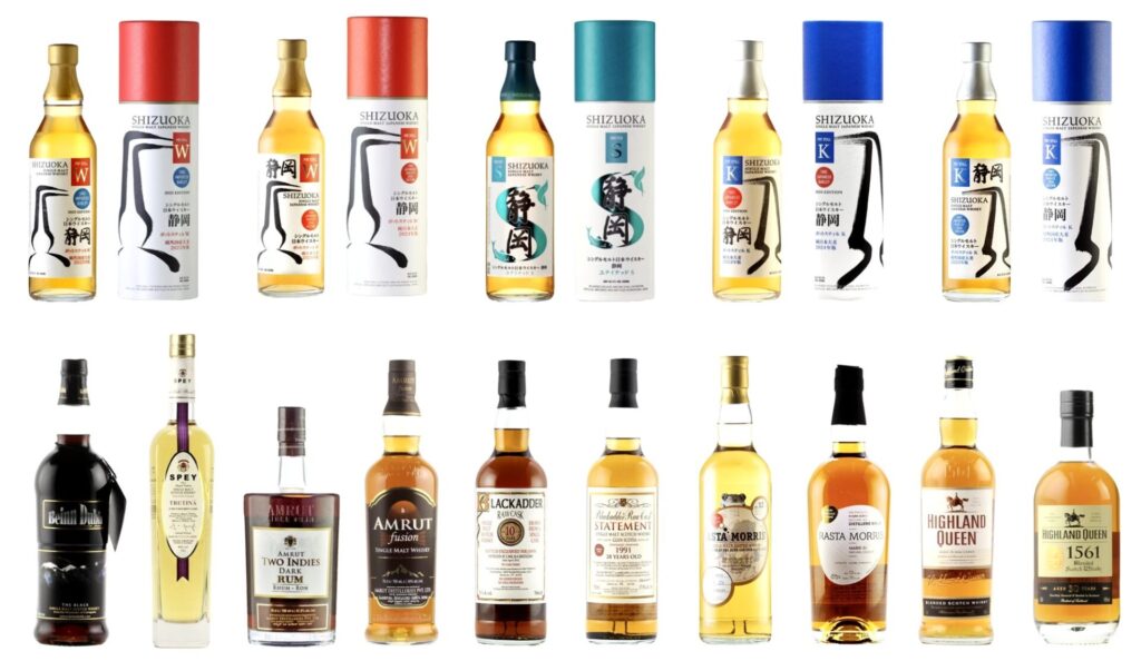 シングルモルト静岡をはじめ、ブラックアダーやアスタモリスなどのボトラーズウイスキー、アムルットやハイランドクイーン、スペイといった輸入ウイスキーブランドもスタンプ獲得の対象に。