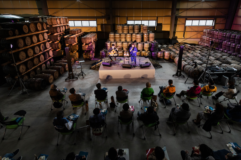 樽が並ぶ貯蔵庫が、ステージを特設した1日だけのイベントスペースに変身します。