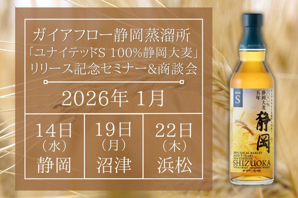 本セミナーは、「ユナイテッドS 100%静岡大麦」のリリースを軸に、静岡蒸溜所が企画段階から取り組んできた「原料まで静岡にこだわるウイスキー造り」についてのご紹介が中心となります。