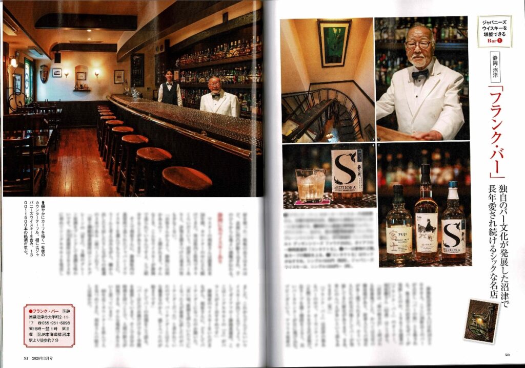 第2部は「ジャパニーズウイスキーを堪能できるBar6軒」。沼津の名店「フランク・バー」が紹介されています。