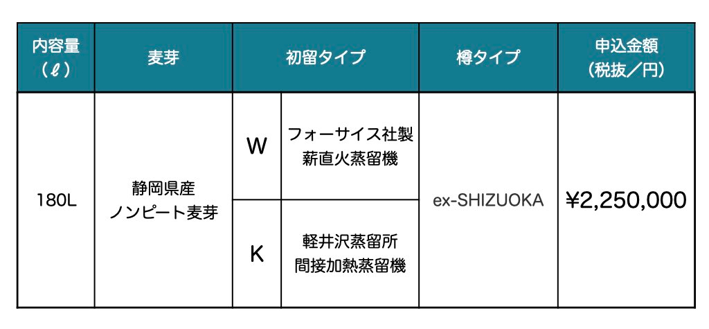 静岡県産大麦原酒をプライベートカスクで所有できる初めての機会となります。ぜひご検討ください。